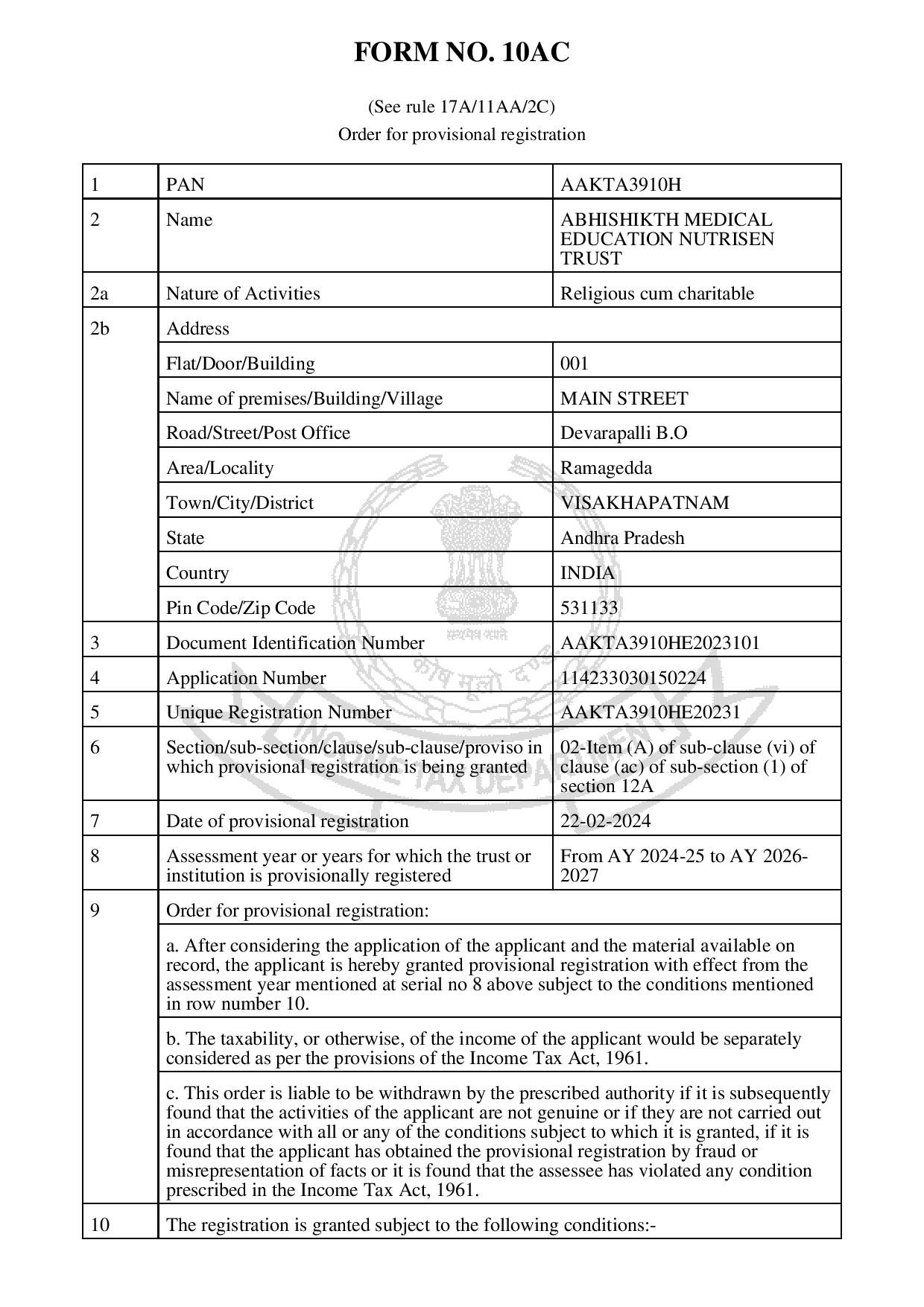 The ABHISHIKTH MEDICAL EDUCATION NUTRISEN TRUST
